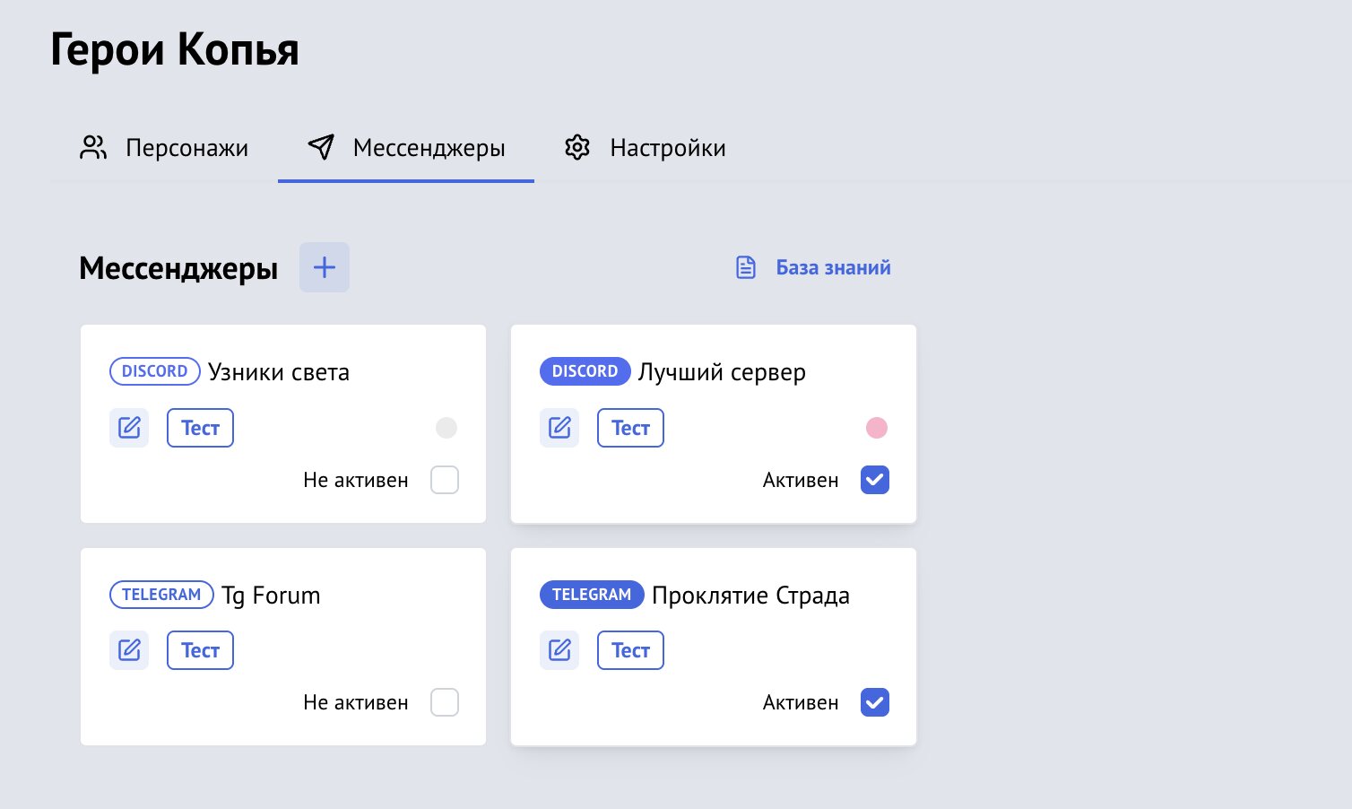 У созданного пресета имеется кнопка «Тест», с помощью которой можно отправить тестовое сообщение в Telegram.